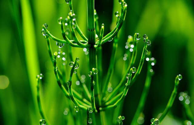Полски хвощ: подобрява синтеза на колаген в кожата, намалява възпалителните процеси в дермата и хиподермата, което бързо спира процеса на разпространението на целулит;